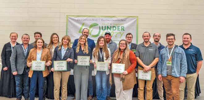 Vegetable Growers News and Fruit Growers News recognized the hard work of the Fruit + Vegetable 40 Under Forty Award Class of 2025 during a reception Dec. 9 at the Great Lakes Fruit, Vegetable & Farm Market EXPO in Grand Rapids, Michigan.