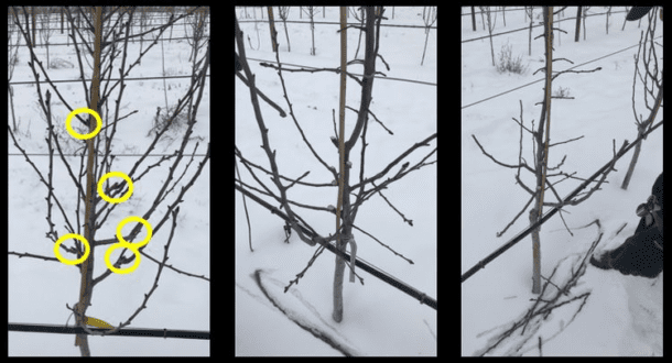 Musacchi also refers to click pruning as “tira savia.” In Spanish, this means “to pull the sap.” By pulling the sap flow to the end of the branch, you are driving vigor in a specific zone of the branch.
