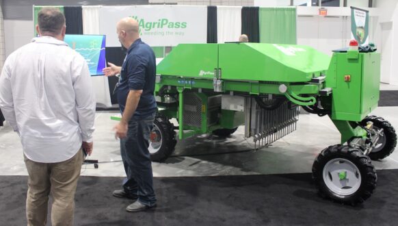 Alternatives to weed killers: With herbicide active ingredients specifically under ongoing threat from multiple angles, there was a wave of research and data presented on the various types of mechanical (like the AgriPass machine pictured right) and physical (i.e., electricity, lasers and fire) weed control options available for specialty growers. University of Georgia Extension precision ag specialist Dr. Luan Oliveira has led field tests of over a dozen different alternative weed management implements and robots. He said the technology can run a grower anywhere from $50,000 to up to $1.5 million for the latest Carbon Robotics LaserWeeder G2. “The question you must answer is, ‘How much are you willing to pay to eliminate hand weeding on your farm?’” Oliveira told attendees.