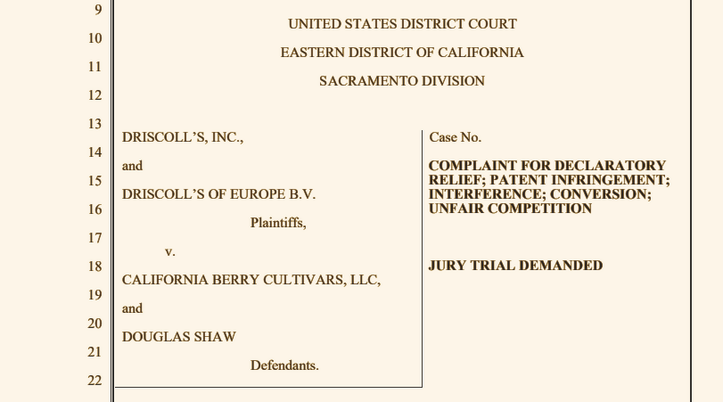 Driscoll’s files legal complaint against California Berry Cultivars