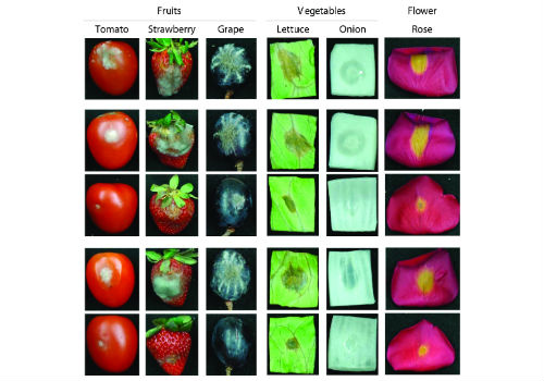 The researchers tested that idea and found that applying those pathogen gene-targeting RNA molecules to the surface of fruits and vegetables and flowers – they used tomato, strawberry, grape, lettuce, onion, and rose – can control gray mold diseases.