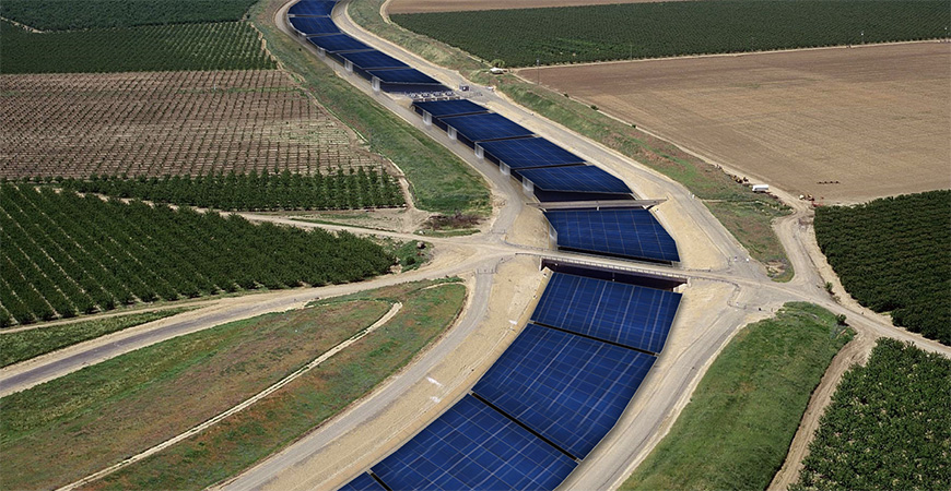 Covering California’s canals in solar panels could save 63 billion gallons of water annually, which is comparable to the amount needed to irrigate 50,000 acres of farmland. Photo: UC Merced